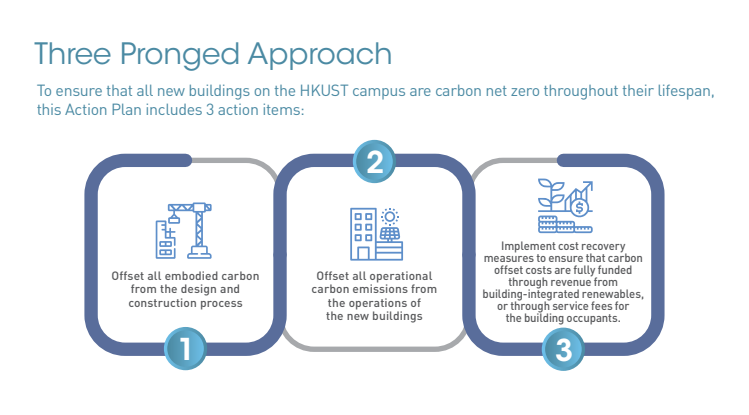 HKUST is committed to improving the energy efficiency of its new buildings as well as renovation projects through the implementation of newly updated HKUST Net-Zero Building Standards. The requirements outlined include anticipating future energy needs, maximizing metering and monitoring capabilities while keeping a flexible design to accommodate for future new sustainable technologies.